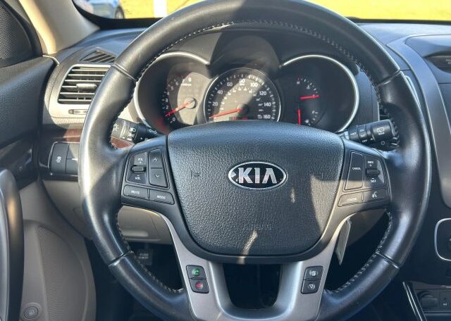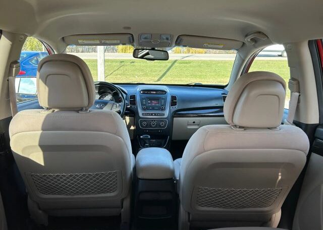 The 2014 Kia Sorento is a stylish and practical SUV with a tan interior and red exterior. It is equipped with features such as seat heating, Bluetooth connectivity, AM/FM stereo, air conditioning, cruise control, and power steering. The vehicle also includes safety features like driver and passenger airbags, anti-lock brakes, back seat safety belts, traction control, and side airbags. With a 2.4L engine size and seating for 4 people, this Kia Sorento offers a comfortable and secure driving experience.