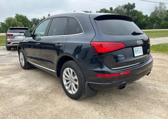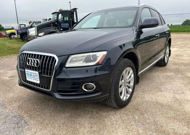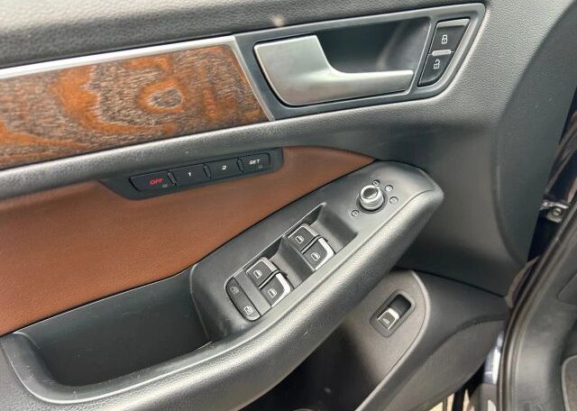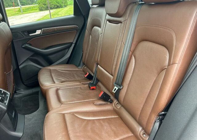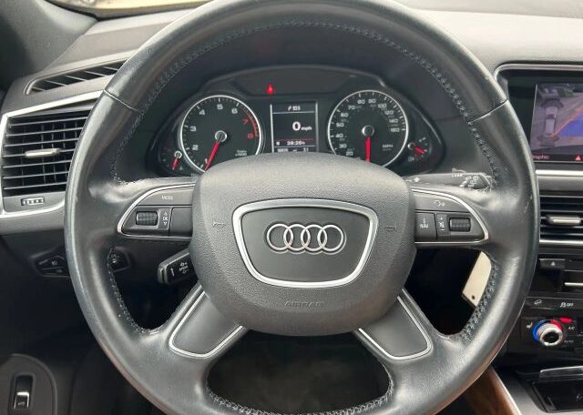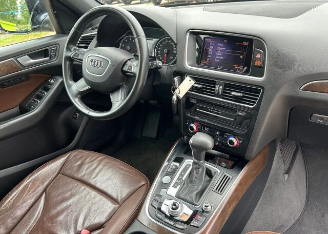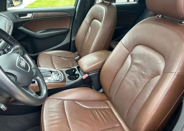 The Audi Q5 is a luxurious SUV with a sleek blue exterior and a rich brown interior. It boasts a powerful 2.0L turbocharged engine, heated leather seats, a navigation system, and various convenience features like cruise control and Bluetooth wireless. With safety features such as driver and passenger airbags, anti-lock brakes, and traction control, the Audi Q5 provides a secure and comfortable driving experience for its passengers. This model offers a combination of style, performance, and safety, making it a desirable choice for car enthusiasts and families alike.