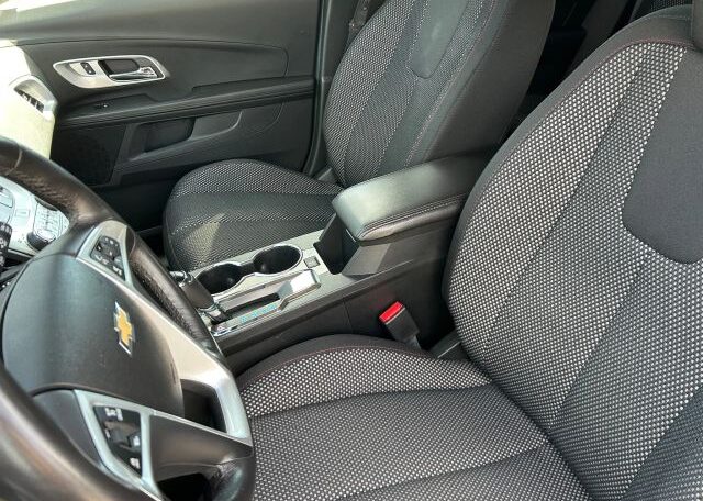 The 2016 Chevrolet Equinox is a stylish SUV with a sleek exterior design in white color. The interior features black cloth seats, seat heating, Bluetooth connectivity, and cruise control for a comfortable and convenient driving experience. With safety features such as driver and passenger airbags, anti-lock brakes, and side airbags, this Equinox model offers a secure and reliable ride for its passengers. Ideal for those looking for a spacious and versatile vehicle with modern amenities.