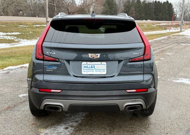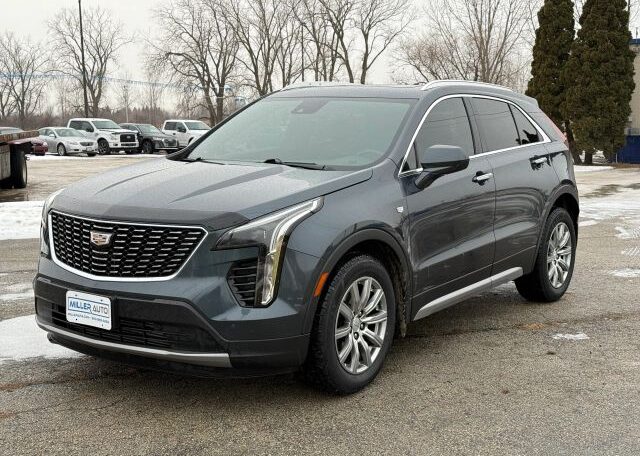 The 2020 Cadillac XT4 Premium Luxury is a stylish SUV with a sleek black interior, featuring a spacious seating area with five seats. This luxurious vehicle is equipped with premium features such as Sirius XM Radio, Blind Spot Monitor, Navigation, Apple Carplay/Android Auto, Heated Seats, Panoramic Sunroof, Backup Camera, Remote Start, and Heated Leather Seats. With a powerful 2.0L Turbo engine and automatic transmission, this Cadillac offers a comfortable and smooth driving experience. The spacious gray exterior, along with its clean vehicle title, makes it a desirable choice for luxury car enthusiasts.