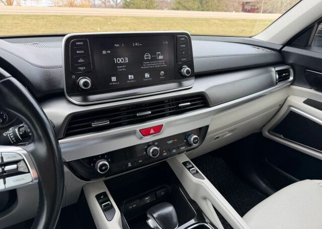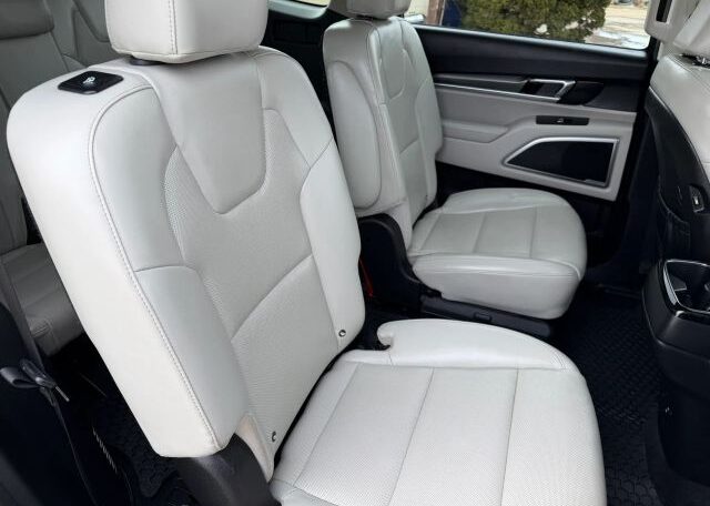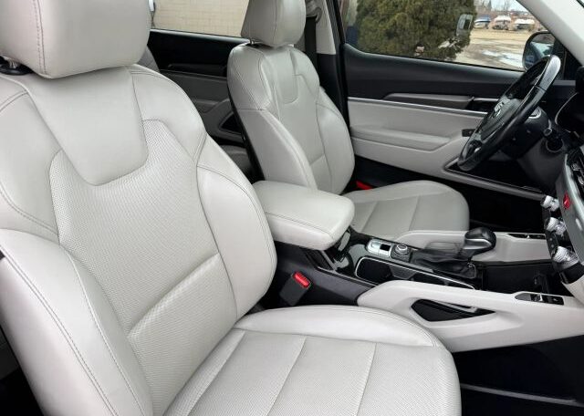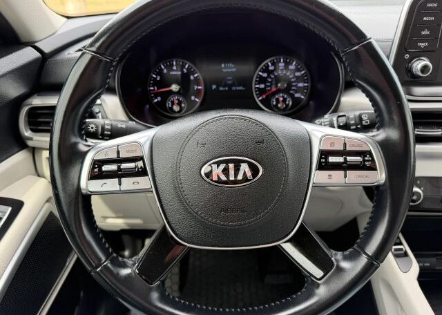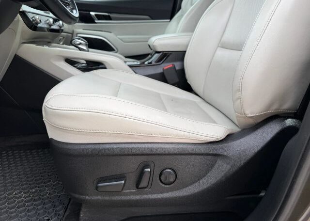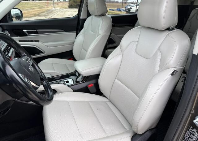 The 2020 Kia Telluride is a spacious SUV with a sleek beige interior and comfortable leather seats, perfect for long trips. It features a 3.8L engine, making it powerful for both city and highway driving. With seating for 7 passengers and 4 doors for easy access, this model is ideal for families or groups. Safety features like driver and passenger airbags, anti-lock brakes, and traction control ensure a secure driving experience. Additionally, the Telluride offers convenience with features like Bluetooth connectivity, cruise control, and a sunroof for added brightness on the road.