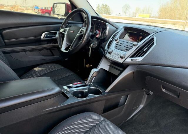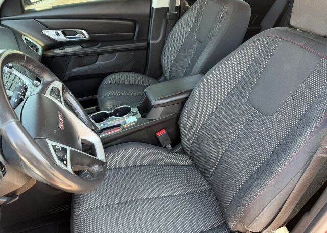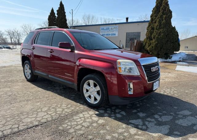 The 2012 GMC Terrain is a red SUV with a sleek black interior. This vehicle has a 2.4L engine, seating for 5 passengers, and comes equipped with features like AM/FM stereo, air conditioning, cruise control, and power steering. In terms of safety, it includes driver airbag, fog lights, anti-lock brakes, back seat safety belts, traction control, and side airbags for added protection on the road. The GMC Terrain is a reliable and stylish option for those in the market for a versatile and safe vehicle.