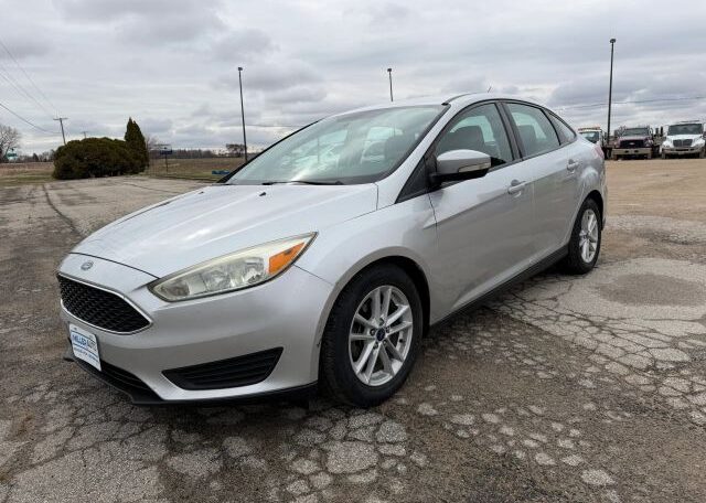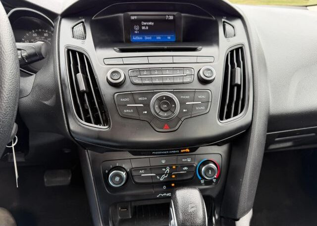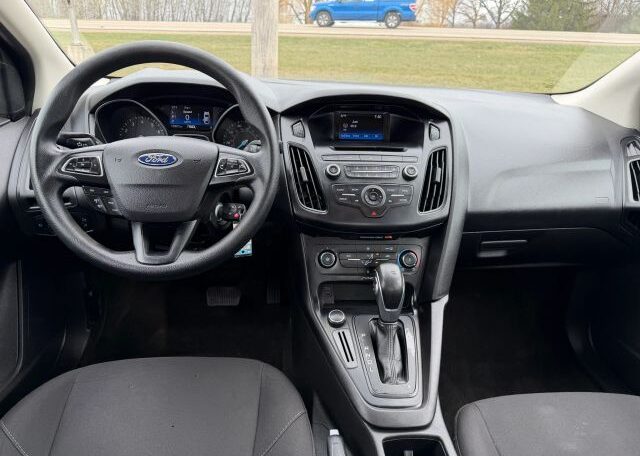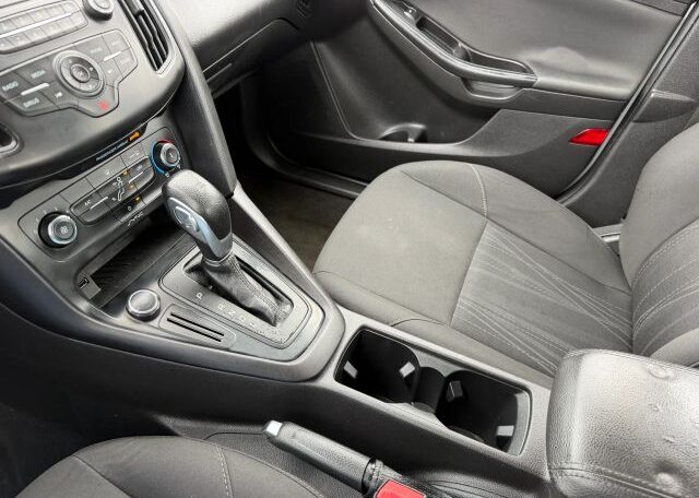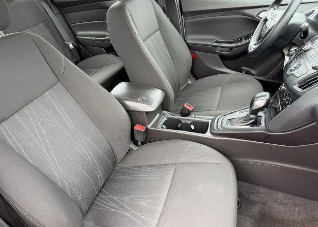 The 2017 Ford Focus is a sleek and stylish car with a black interior and silver exterior. This model has a 2.0L engine, 5 seats, and 4 doors. It comes equipped with features such as Bluetooth, AM/FM Stereo, Air Conditioning, Cruise Control, Cloth seats, and Power Steering. Safety features include Driver Airbag, Passenger Airbag, Anti-Lock Brakes, Back Seat Safety Belts, Traction Control, and Side Airbags, ensuring a secure driving experience for the occupants of the vehicle.